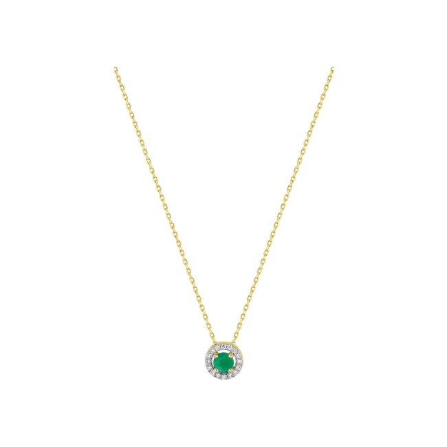 Pendentif en or jaune, émeraude et oxyde de zirconium, taille 42cm
