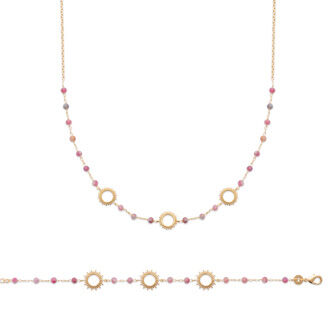 Bracelet en plaqué or et tourmaline rose, 18cm